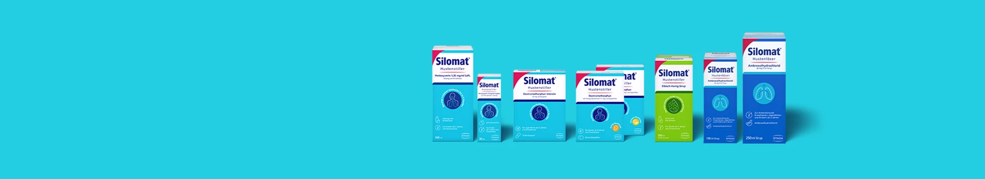 Von Silomat® sind Produkte gegen trockenen Reizhusten (Hustenstiller) wie auch produktiven Husten (Hustenlöser) verfügbar. Silomat® Hustenstiller sind Medikamente bei Reizhusten und wirken hustendämpfend. Die Hustenstiller mit Dextromethorphan (DMP) und Pentoxyverin stillen trockenen Reizhusten am Tag oder abends vor dem Schlafengehen. Der Silomat® Hustenlöser löst festsitzenden Schleim und erleichtert das Abhusten. Dadurch werden erneute Hustenattacken reduziert.